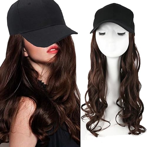iLUU 22" Black Wave Hair with Baseball Cap Wig
