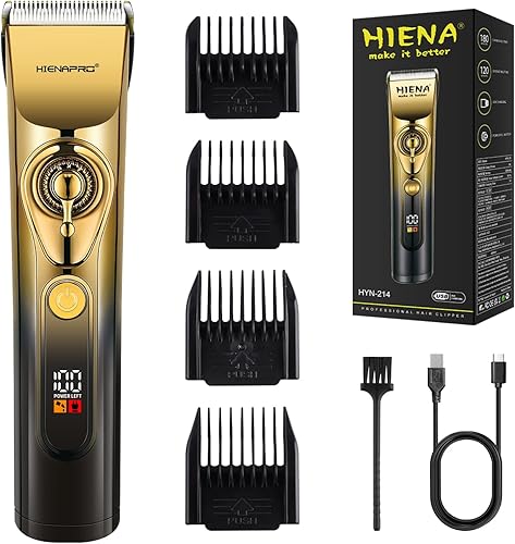 HIENA PRO Cordless Hair Clippers for Men - LED Display & Low Noise