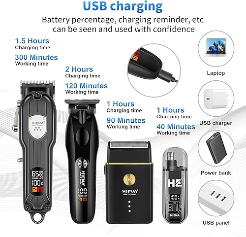 USB Hair Clipper Kit for Men - Quiet Trimmer with LED Display