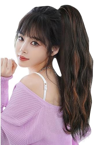 20" Clip-In Ponytail Extension | Long Curly Synthetic Hairpiece(Brownish Black)