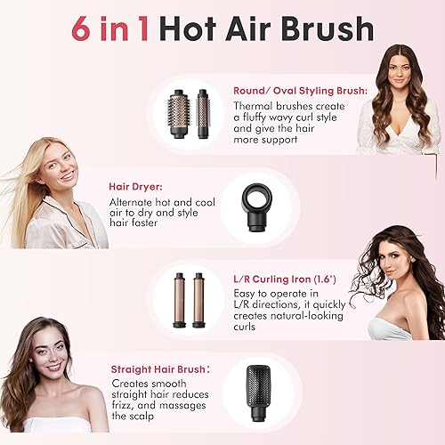 6-in-1 Hair Styling Tools: Enjoy versatile styling with our 6-in-1 multifunctional air styling set, featuring a hair dryer, Auto-Wrap curling irons, hair dryer brushes, and a hair straightener, effortlessly catering to all your styling needs