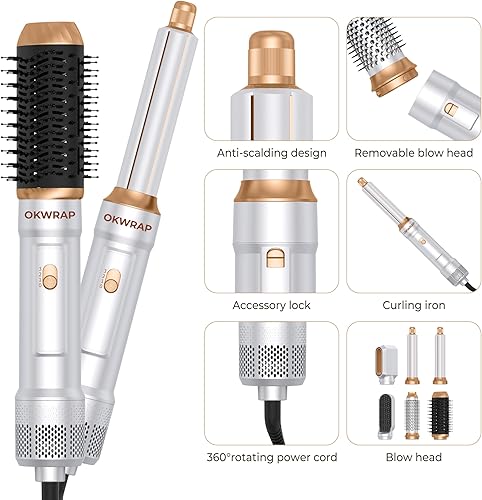 【Unique Design Hair Styling tools】6 in 1 hair styler set combines a hair dryer with the popular Hot Air Brush Head design, You can pair it with different brush heads to create on-trend looks. It has a unique oval design that helps smooth hair and prevent tangles. The handle of this hairdryer brush it is ergonomic and easy to grip with a 360 degree rotatable power cord, allowing you to make it easy and comfortable to use.