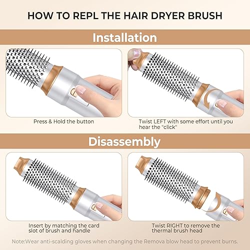 【Use Tips】Our hair brush blow dryer plug have standard US ALCI Safety Plug Auto Leakage Protection. During use, the handle temperature is high, please don’t worry, we have undergone numerous high-temperature experiments and have safety and explosion-proof properties. At the same time, Wear anti-scalding gloves when changing the Removable blow head to prevent burns. During the few minutes of initial use you may notice a slight odor which is completely normal and it will quickly disappear.
