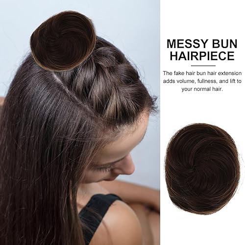 Faux Hair Buns Clip - Natural Look Brown Black Bun Hairpiece(Light Brown)