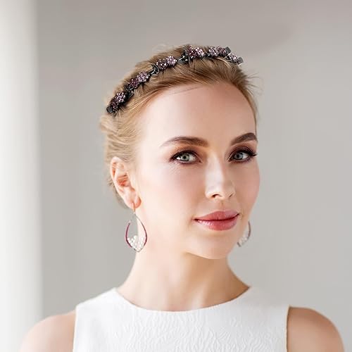 Exquisite Design: Create your own hairstyles with freedom. The purple and gold crystal flower headbands feature a protruding tooth design with 8 small clips for double-layered hair styling. The top layer can shape bangs while the bottom layer secures the rest of the hair, preventing obstruction of the face