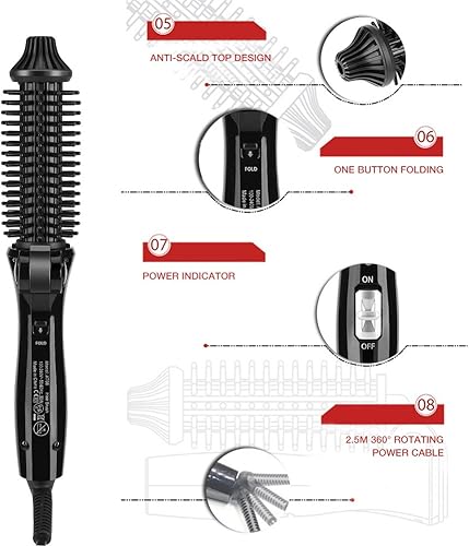 【Smart Features to Keep You Protected】This hair curler brush features anti-scald design and a cool tip, so no worry about burns. It heats up fast & maintains even heat, no extra overheating hair damage. Anti-scald design, comb is only 50℃ when the core is 200℃. 360 degree swivel cord for - styling