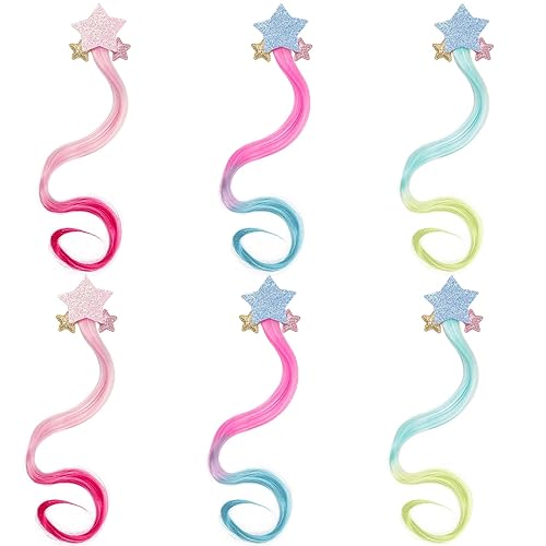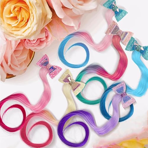 1.Variety of colors: These colored hair extensions come in a set of 6 gradient colors, making it easy to match with different outfits and styles as a great addition to any girl's hair accessories collection.