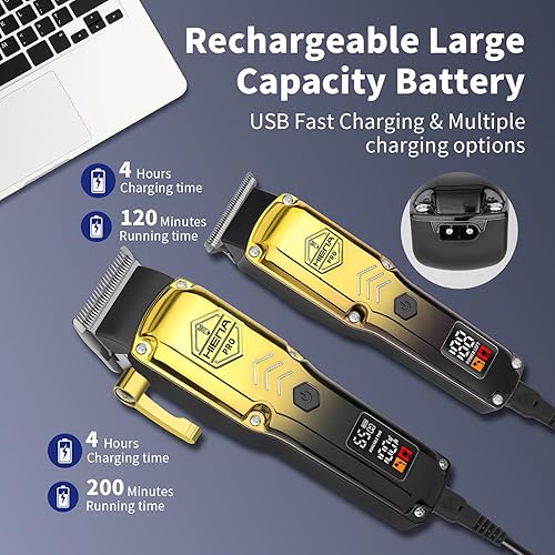 【Large Capacity Battery & USB】This hair clipper set for men comes with a durable battery, which can be fully charged in just 4 hours, with a long running time of up to 200 minutes. What’s more, the battery for trimmer also last for 120 minutes long, suitable for travelling. You can use our USB charging cable to charge our hair clipper kits anytime, anywhere via your computer, car charger or even mobile power.