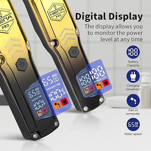 【LCD Display】This hair clipper set have digital LCD displays that provide real-time feedback on battery percentages ranging from 0 to 100. It also includes intelligent reminders for charging, refueling, and cleaning, making it convenient for users to access various status displays.