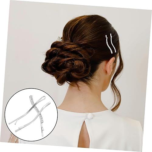 Korean Rhinestone Hair Clips - Silver Curved Bobby Pins for Women