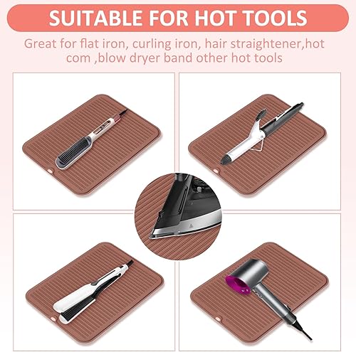Large Heat Resistant Mat for Hot Hair Tools 14.2x11"(Brown)