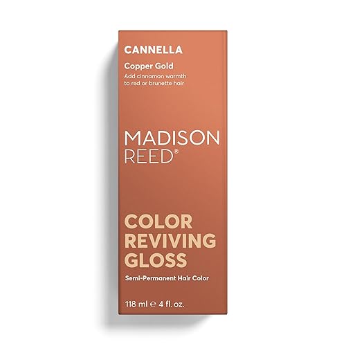 REVIVE YOUR HAIR COLOR: Revive faded color and tone, reduce brassiness and add brilliant shine with Madison Reed Color Reviving Gloss. Madison Reed Color Reviving Gloss in Cannella works best on brunette or red hair and adds a pop of color with copper gold tones.