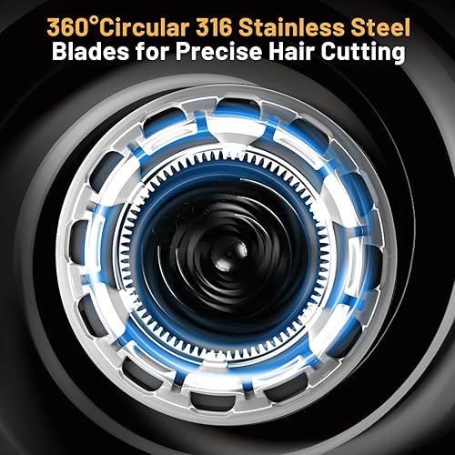 Designed for self haircut, the 360° circular stainless steel blades deliver smooth and precise results every time. The blades move rapidly back and forth inside, cutting hair efficiently without touching the scalp—ensuring a safe and gentle experience