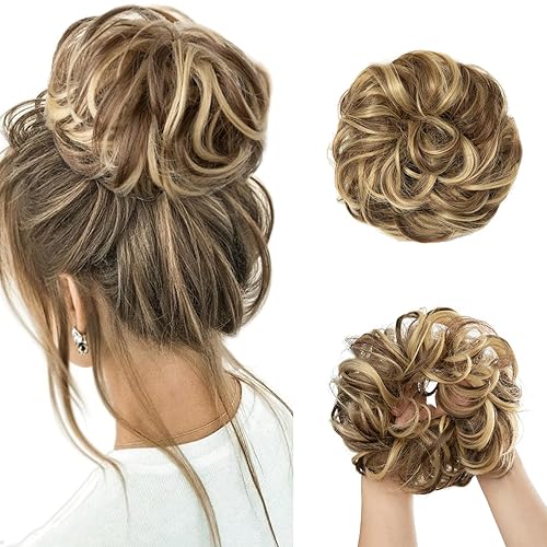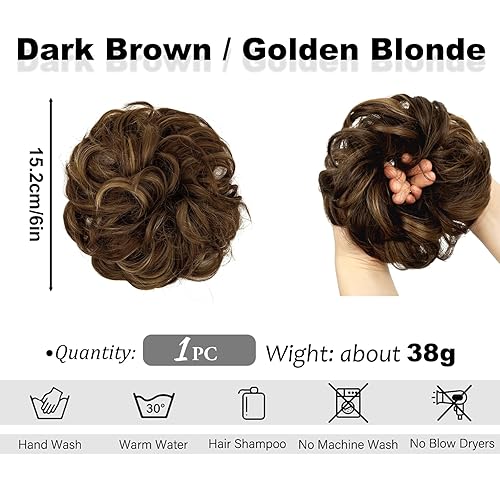 Messy Bun Hair Piece - Brunette & Blonde Updo Extensions(Dark Brown/Golden Blonde)