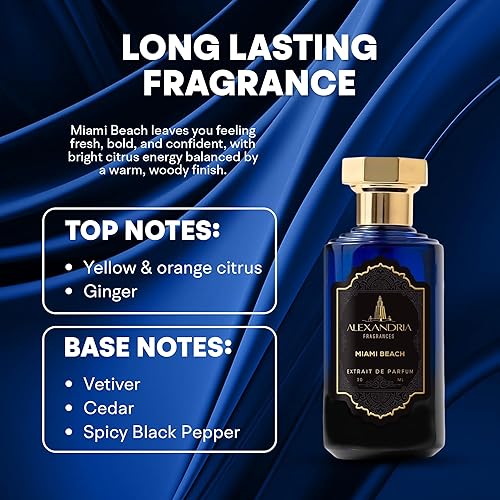 Refreshing Citrus & Ginger Notes: Miami Beach Perfume opens with vibrant citrus and a hint of ginger, creating a fresh and uplifting scent. This long-lasting fragrance captures the essence of summer and is ideal as a unisex fresh cologne for men and women who enjoy bright, energizing aromas that feel refreshing in every season.