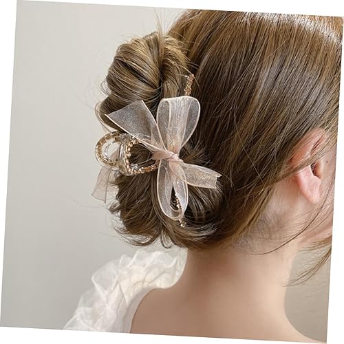 Mikinona Non-slip Mesh Bow Hair Claw Clip - Light Gold