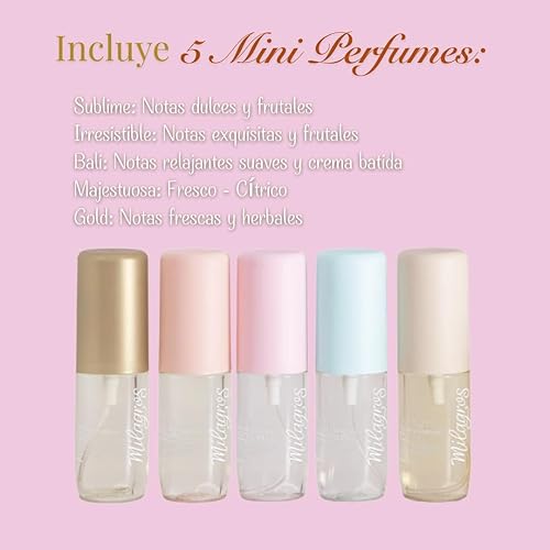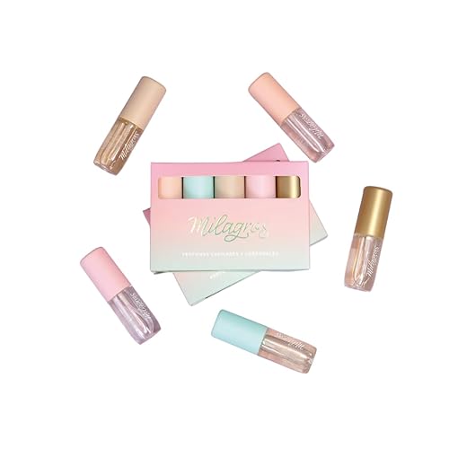 TRAVEL-FRIENDLY SET: Collection includes 5 miniature hair perfumes in elegant bottles with pastel-colored caps, perfect for on-the-go fragrance touch-ups