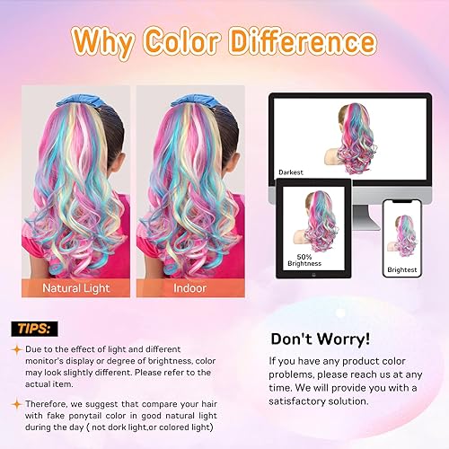 Comment on "Peachy Pink Clip-in Ponytail Extension - Wavy Curly Synthetic Hair(Bright Rainbow Color,18 Inch (Pack of 1))"