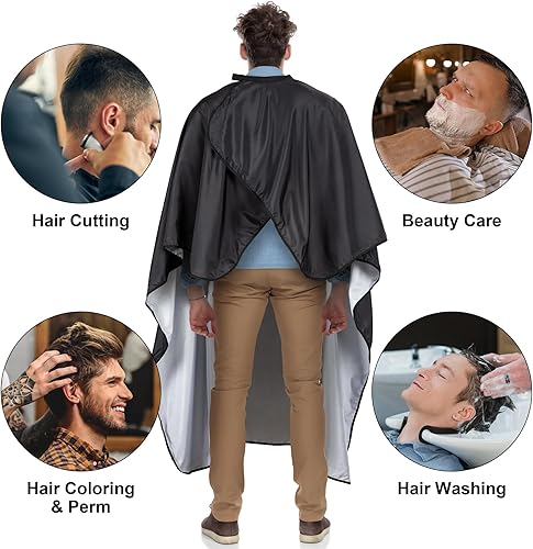 Size: 160 x 142cm/ 63 x 56 inches, A professional barber cape suitable for everyone. No more worries about hair dyes, water dripping, shampoo mess and hair trimming all over your customer’s clothes.
