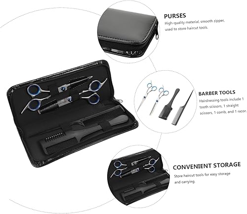 Haircut scissors with bag--the professional and barber tool kit is not easy to hurt you, it is an choice for barber shops and household daily necessities,teeth straight scissor