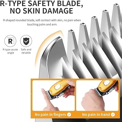 Premium Beauty Hair Clipper: The men's hair clipper adopts high-performance imported blades with precise gap design to improve safety and minimize friction during trimming. R-shaped 360° skin-friendly blunt blades provide a fast, safe trim without pulling or irritating skin. This hair clipper is versatile enough to meet your needs at home or in a professional setting.