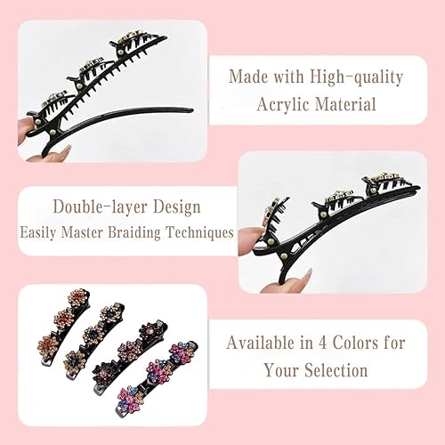 Elegant Hair Taming Solution: With a double-layer structure and four stunning rhinestone shades, the large clip paired with three smaller person effortlessly manages frizzy hair and enhances your look with refined elegance
