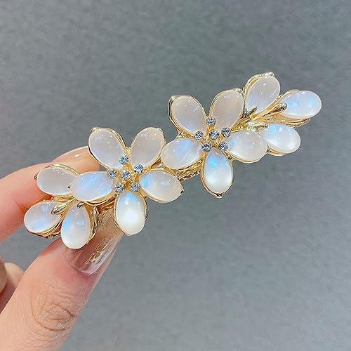 • Elevate your hair style with this elegant flower hair claw clip, shimmer faux cat eye rhinestone, secure spring clamp design