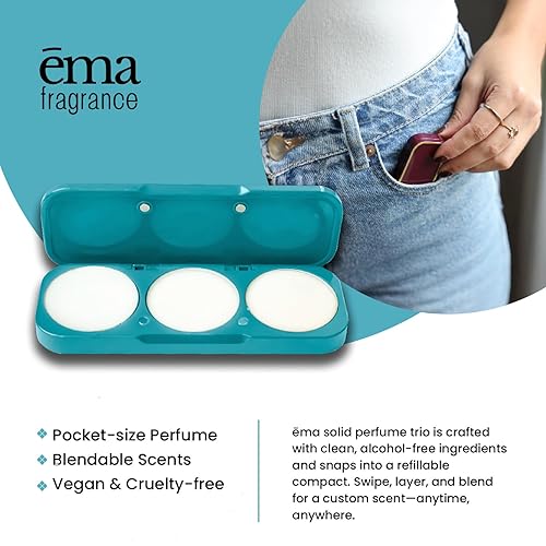 REFILLABLE & TRAVEL-READY POD – The 2 g solid perfume pod fits perfectly into ēma’s refillable magnetic compact, making it TSA-approved and mess-free.