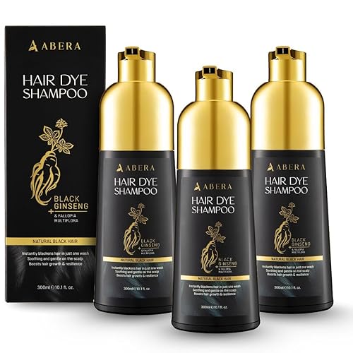 ABERA Hair Dye Shampoo for Grey Coverage - Natural Black Color (3 Pack)