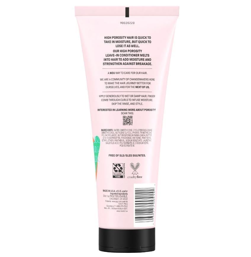• High Porosity Leave-in Conditioner for coily hair adds moisture and strengthens against breakage