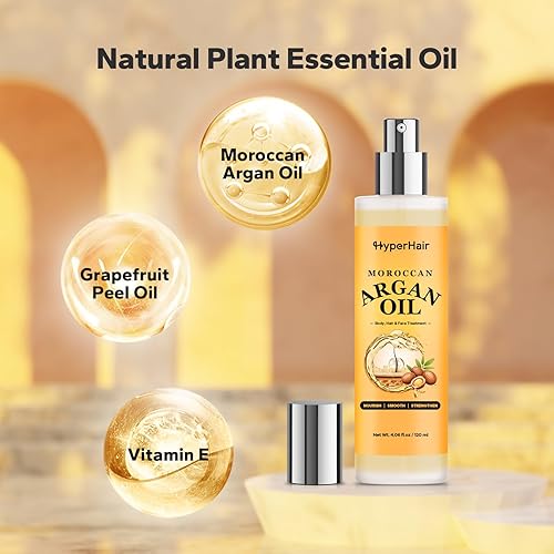Versatile Multi-Purpose Treatment: While this product is designed primarily as a hair treatment, HyperHair Moroccan Argan Oil is incredibly versatile. It can also be used as a nourishing face serum or body oil to hydrate and replenish dry skin. The high vitamin E content helps rejuvenate your skin, giving it a smooth and radiant glow. Whether you're using it to repair your hair, reduce frizz, or moisturize your skin, this all-in-one oil is an essential part of any beauty routine.